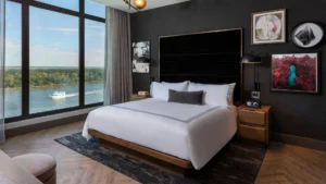 The Thompson Hotel offers upscale sophistication along the Savannah River’s edge where the Historic District meets the Eastern Wha